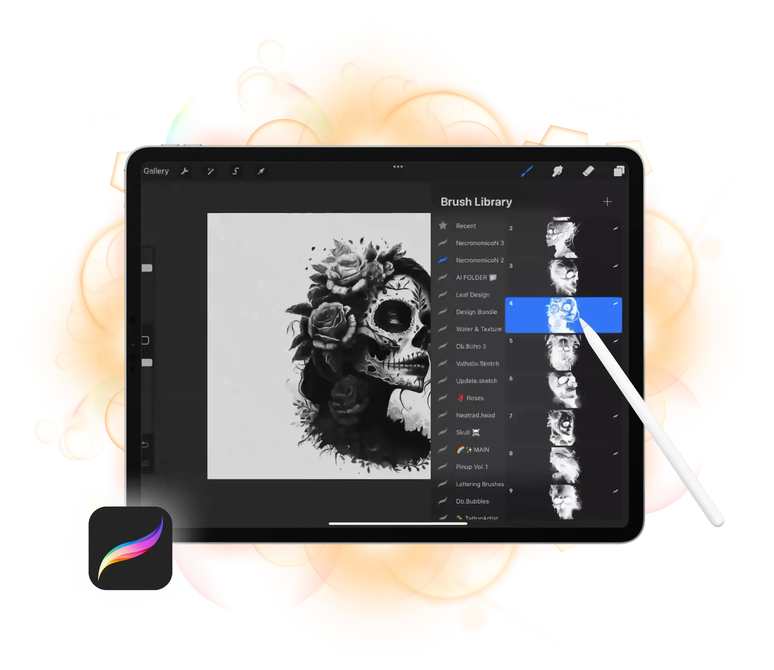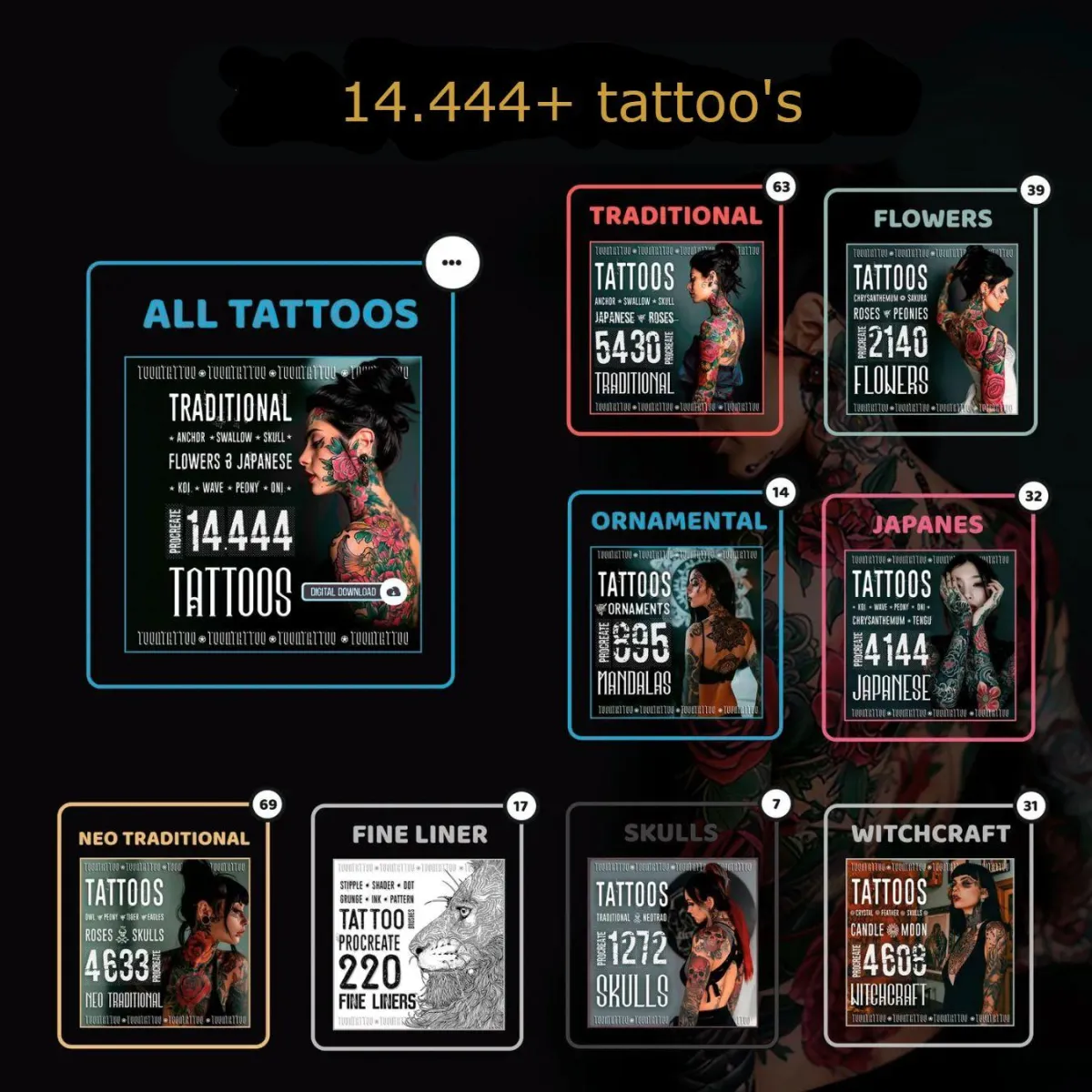 Professional-grade Procreate and Photoshop brushes designed specifically for creating stunning tattoo artwork.